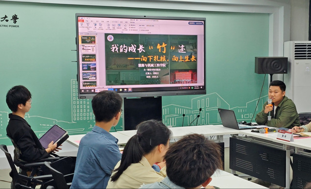 优秀学生代表、能源与动力工程专业202301J班班长曾镜文结合自身经历,分享了“优秀学生”的深刻内涵。作为入党积极分子,他谈到了自己的认识:“榜样的力量,源于持之以恒的以身作则——既要在思想上引领方向,更要在行动上服务同学。”