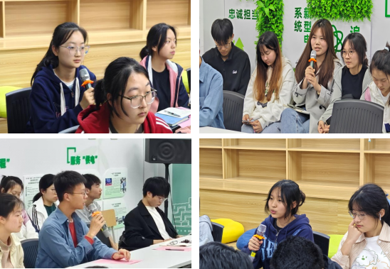 在交流研讨环节,学生围绕三个主题踊跃发言。在思想成长与责任担当方面,同学们结合“推优”标准,提出“优秀是标杆更是责任”“以行动诠释担当”等观点,并计划通过组建学习小组、参与志愿服务等方式带动集体进步。在学业发展与挑战应对方面,针对专业课程难度大、实践资源不足等问题,同学们建议增设学科竞赛指导、开放更多实验室资源。周婷在现场一一予以回应,表示将强化联动协同,推动相关举措尽快落实落地。在生活适应与需求反馈方面,同学们围绕校园生活适应难题,提出建立跨年级文体活动平台、拓展校内外志愿服务基地等建议。学院表示将整合学生需求,进一步完善多元化成长支持体系。