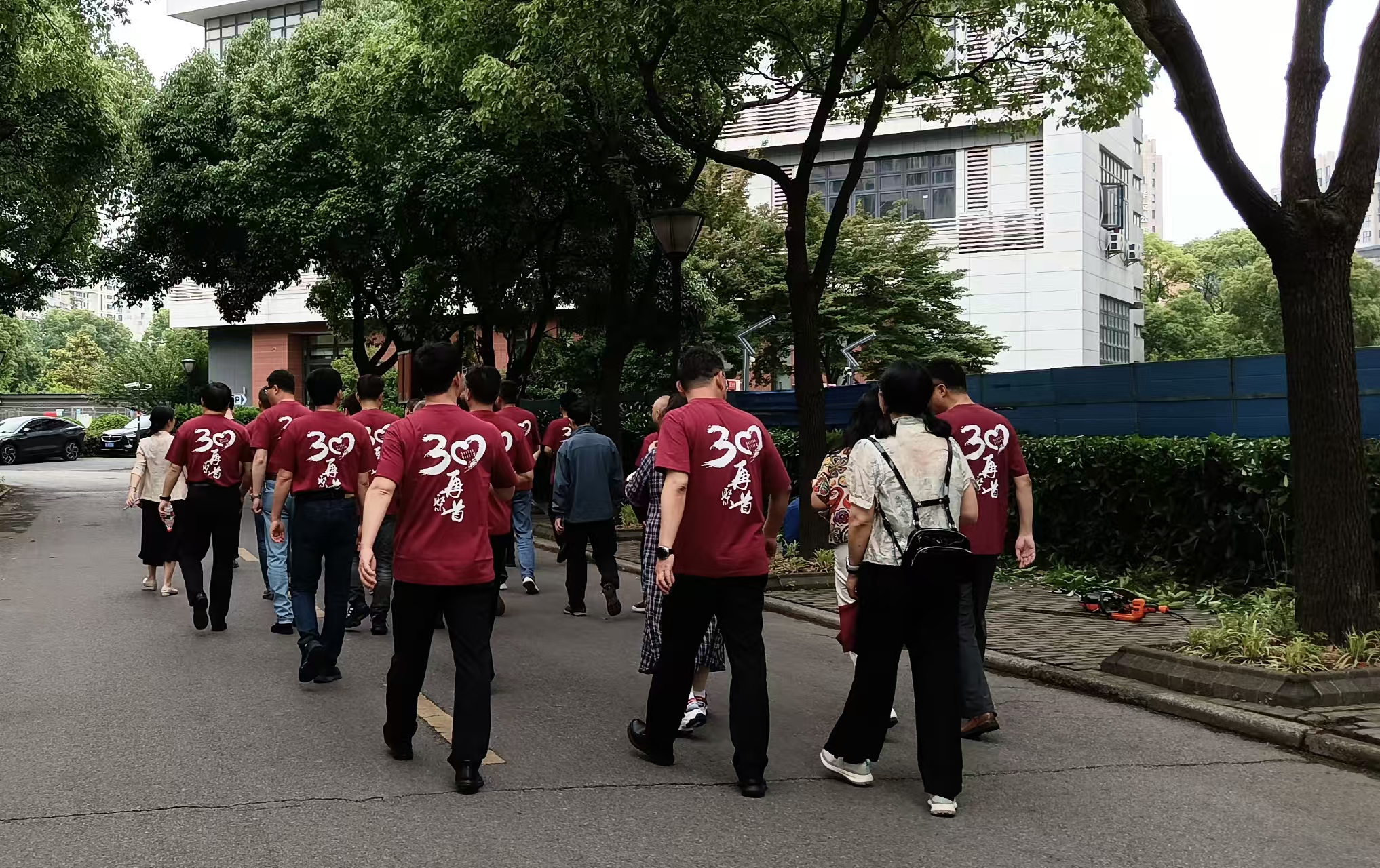 上午10时,校友们陆续抵达学校,身着统一纪念文化衫,在长阳路2588号杨浦校区门口前合影留念。随后,在志愿者的引导下,校友们参观了英华楼、图书馆、行政楼、教学楼、宿舍楼及奋进楼实验室。面对焕然一新的校园设施与科研成果展示,校友们感慨万千,纷纷赞叹母校在学科建设与技术创新上的飞速发展。漫步于曾经学习生活的地方,回忆当年的点滴时光,校园的一草一木勾起了校友们对青春岁月的无限怀念。