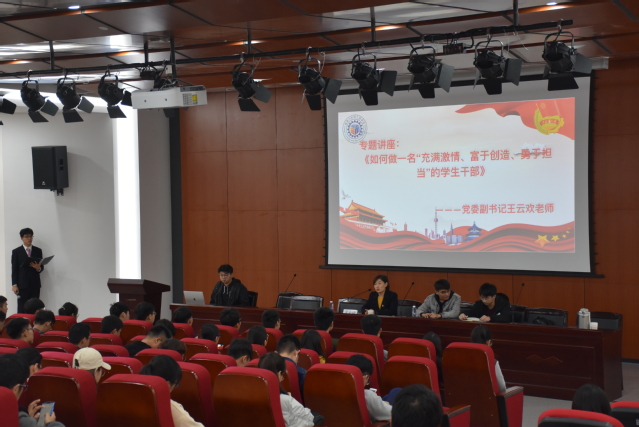 2018年11月27日16:00,356体育在线官网初级团校第二讲在学术楼103举行。王云欢老师作主题为《如何做一名“充满激情、富于创造、勇于担当”的学生干部》的专题讲座。