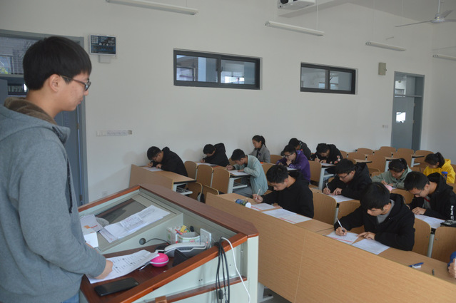 2018年11月24日上午,356体育在线官网第一届四级模拟考试在二教顺利举行,大一11个班级共301名同学及大二5名同学参加,监考人员由学生会主席团、团学各部门部长及班导生组成。