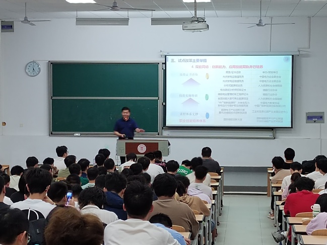 仇中柱对改革方案做了详细解读,介绍了改革试点的目标、举措与学生培养方案,重点围绕课程体系优化、校企协同育人、实践教学强化等方面展开说明。他指出,学院将通过对人才培养方案的进一步优化和校企协同育人的深入联动,切实增强学生的工程实践与就业竞争。