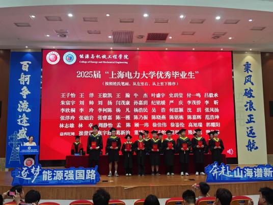 潘卫国和陈乃超先后宣读了学院《2025届“上海市普通高等学校优秀毕业生”名单》和《2025届“365best体育亚洲官网优秀毕业生”名单》,18名市优秀毕业生和54名校优秀毕业生锐意进取,成为能机学子的榜样力量。主席台领导为优秀毕业生代表颁发了证书。