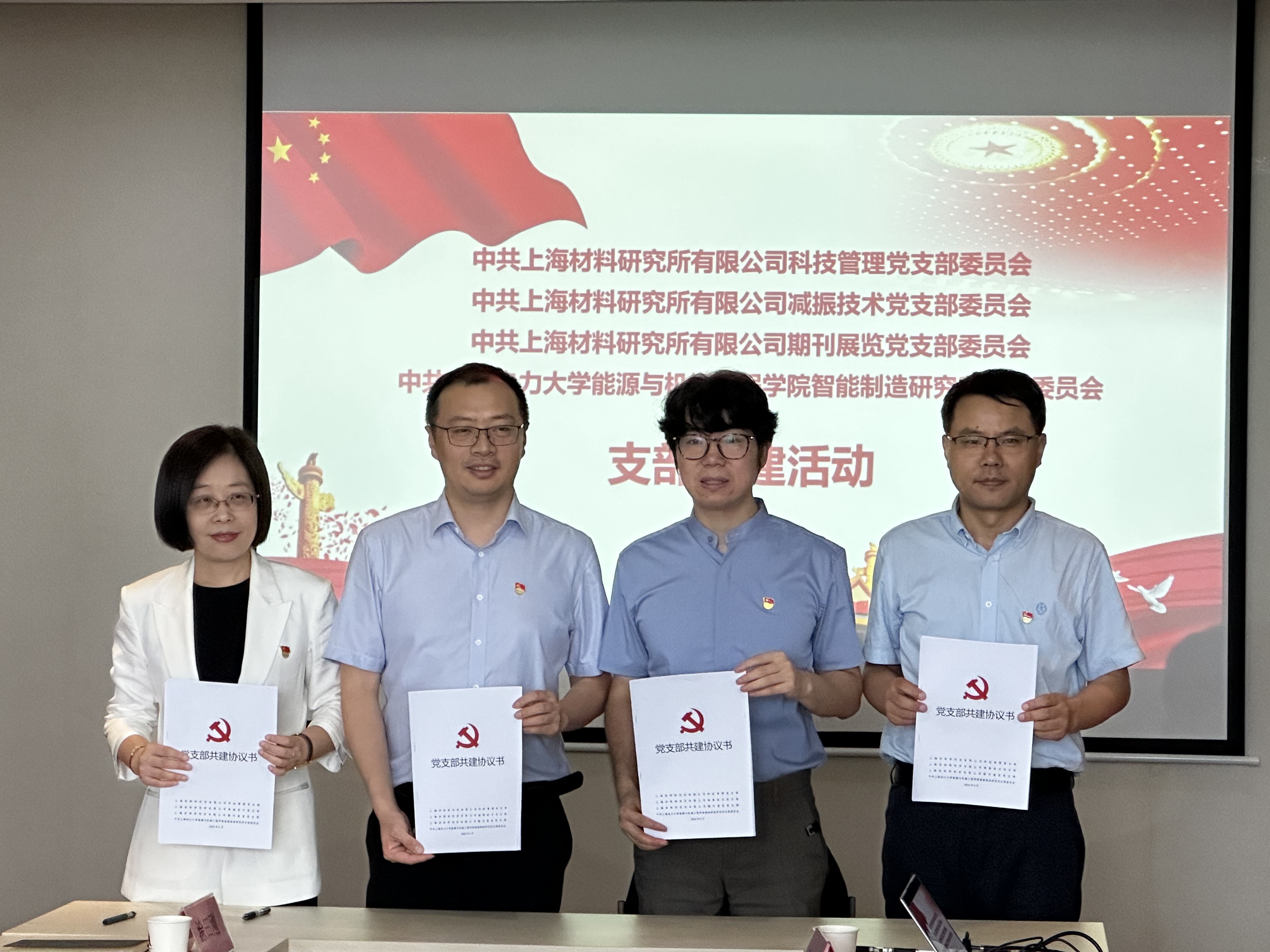 为强化党建引领科技创新,推动产学研深度融合。2025年6月26日,中共上海电力大学356体育在线官网智能制造研究所教工党支部与中共上海材料研究所有限公司科技管理党支部、减振技术党支部和期刊展览党支部在杨浦校区行政中心9楼五号会议室举行共建签约活动。双方以党建为纽带,围绕科技创新、人才培养、成果转化、资源共享等方面展开深度交流,共同探索“党建+业务”双向赋能新路径。