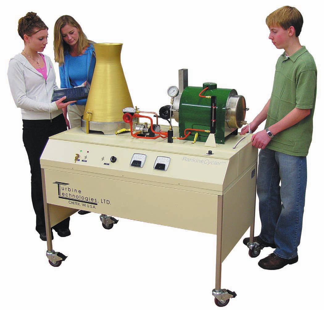 蒸汽轮机动力发电系统是一套完整的微型实验系统,用以进行蒸汽发电厂系统工程教学 与培训,复制了一套发电厂的所有主要部件,帮助学生进行学习。尽管系统是按比例缩小的, 但学生使用它,完全能体验全尺寸真实系统中所采用到的热力学原理。