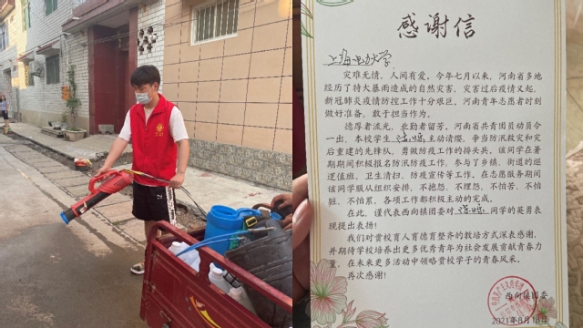 近日,356体育在线官网团委收到河南省西向镇团委寄来的感谢信,信中指出:今年七月以来,河南省多地经历了特大暴雨,地质灾害频发,灾情严重,灾难过后疫情又起,新冠肺炎疫情防控工作仍然十分艰巨。我校学子陈烁主动请缨,争当防汛救灾和灾后重建的先锋队,勇做防疫工作的排头兵。该同学在暑期期间积极报名防汛防疫工作:参与了乡镇、街道的巡逻值班、卫生清扫、防疫宣传等工作。在志愿服务期间该同学服从组织安排,不抱怨、不埋怨、不怕苦、不怕脏、不怕累,各项工作都积极主动的完成,受到了居民和社区人员的一致好评。镇团委对于我校育人育德育整齐的培养方式深表感谢,并期待我校更多优秀青年为社会发展贡献青春力量。