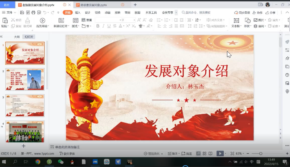 2022年4月15日,356体育在线官网第三学生党支部,组织全体党员以及部分发展对象开展了线上组织生活,共7项议程:理论理论学习、互动答题、传经送宝、学习强国积分榜、家乡美、党小组汇报发展对象情况以及集体过政治生日。