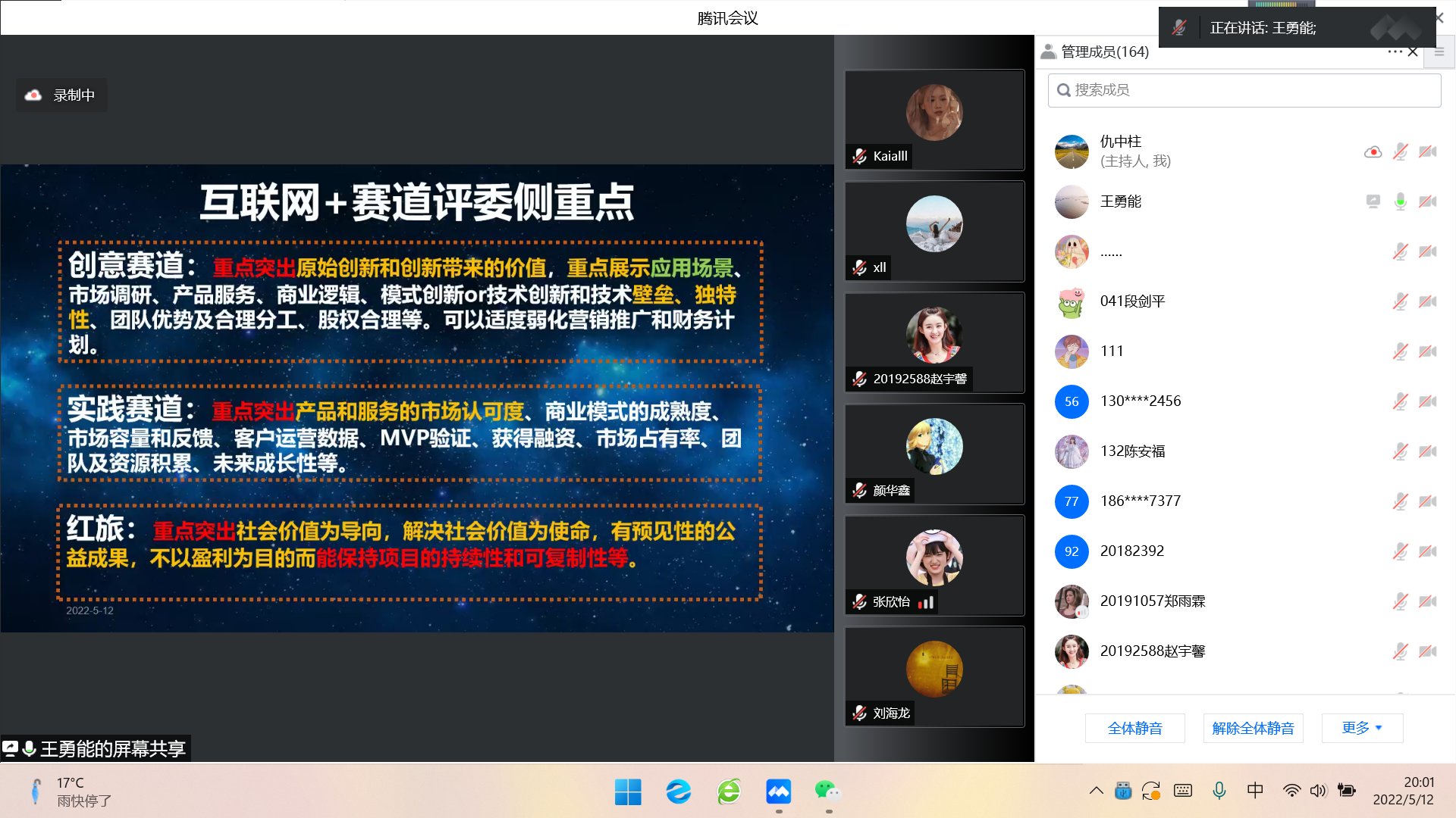 为提高互联网+创新创业项目申报质量,提升学生的创新创业能力,356体育在线官网于2022年5月12日晚和2022年5月15日晚分别邀请浙江理工大学王勇能老师和上海理工大学学创新创业学院副院长夏鲲老师开展互联网+专题培训会,会议由仇中柱副院长主持,356体育在线官网教师与学生150余人参会。