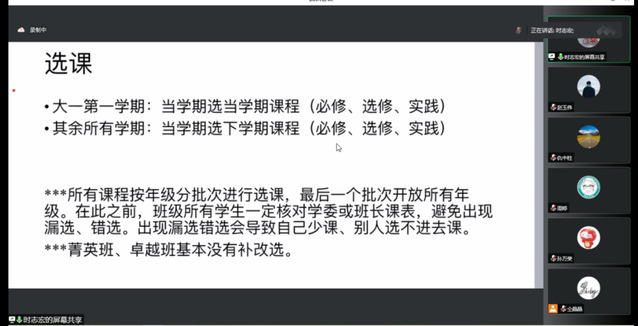时志宏介绍了学院教务工作的基本内容、两位教务老师各自的分工以及各项工作的基本安排和关键要素。并对正常选课、补改选课、重修选课及成绩录入等内容进行了强调和说明,对培养计划、学籍学分审核以及特殊学生情况等内容进行了指导和解释。孙万荣对各项教务工作重点、尤其是毕业班学生的特殊情况做了补充说明和详细阐述。随后,各年级辅导员就学生日常管理工作中遇到的教务相关问题和教务老师进行了深入的讨论交流,为下一步工作的顺利开展提供了便利。