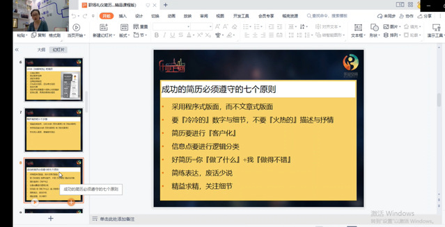 简历不仅是职场人的“身份证”,也是职场人的“说明书”。陈燕首先详细介绍了简历应该包括什么内容,并将简历制作分为三个部分:第一、根据招聘启事,分析HR的“显性需求”和“稳形需求”。第二、用事实匹配HR的“显性需求”和“稳形需求”。第三、针对用人需求,精确制作简历。其次,陈燕就成功的简历必须遵守以下七个原则与同学们进行了分享:其一要采用程序式版面,而非文章式版面;其二要具体的数据做支撑,不要单纯的描述和抒情;其三要针对不同的工作岗位要进行定制化制作;其四要对简历内的信息要进行逻辑分类;其五要用“做了什么”+“做得很好”来描述工作内容;其六语言表达要精练简洁;其七要精益求精,关注细节。