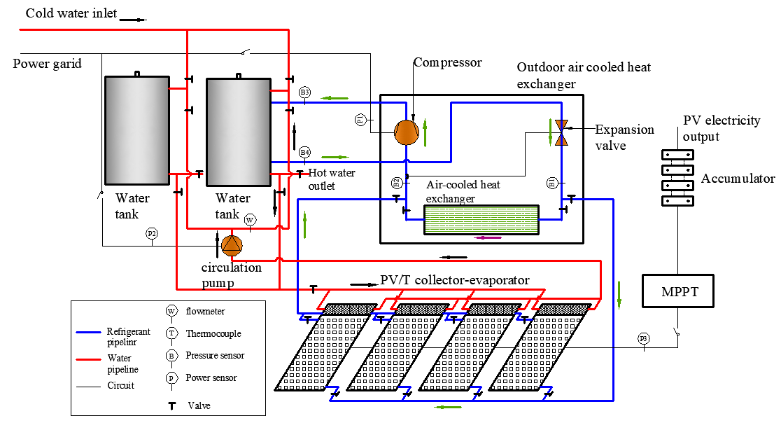 近年来,太阳能光电光热综合利用(PV/T)因可同时电能和热能,具有很高的综合利用效率而成为太阳能利用领域的研究热点。合理集成传热模式在满足用户电、热需求的同时提高PV/T系统的耐候性是该方向的前沿课题。第一篇论文集成被动式相变传热(无功耗)与主动式相变传热(有功耗),设计并制造了PV/T复合集热器/蒸发器;并基于该复合集热器/蒸发器,开发了光伏-太阳能热泵/热管复合系统;该复合系统具有主、被动两种运行模式,可根据实时气象及用户要求切换运行模式。搭建了实验测试平台,并建立了复合系统的切换运行数值模型,对主、被动运行模式的切换时机进行了研究。