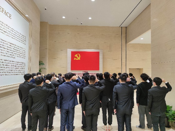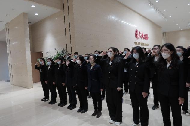 同学们参观了《伟大的开端——中国共产党创建历史陈列》展览,并在馆内进行入党宣誓宣誓大厅内悬挂着鲜红的中国共产党党旗,356体育在线官网党委副书记周婷同志领誓,新发展的预备党员同志紧握右拳,郑重而庄严地宣誓:“我志愿加入中国共产党……”,铿锵有力的誓言,掷地有声的承诺,响彻大厅。