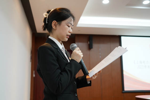 学院原学生会主席团成员马思琦以《<不忘跟党初心,勇担青春使命>——深入学习贯彻党的二十大精神,带领全院学子绽放青春之光》为主题向大会做学生会工作报告。