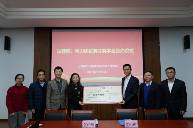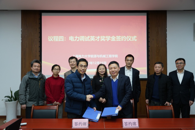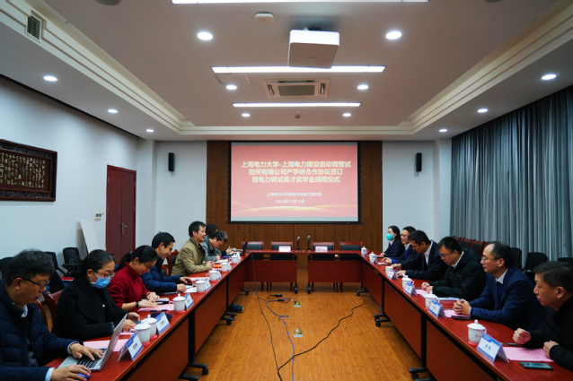 12月16日,我校与上海电力建设启动调整试验所有限公司产学研合作协议签订暨电力调试英才奖学金捐赠仪式在临港校区学术楼105会议室举行。上海电力建设启动调整试验所有限公司董事长兼总经理叶祺贤、副总经理茆顺涵、副总经理陆杰、办公室主任庄艳、市场经营部主任张丰和调研员张玮与会;我校总会计师张川、校长办公室主任、基金会理事长李兆鹏和能机学院党政班子及教师代表参加会议。会议由356体育在线官网党委书记潘卫国主持。