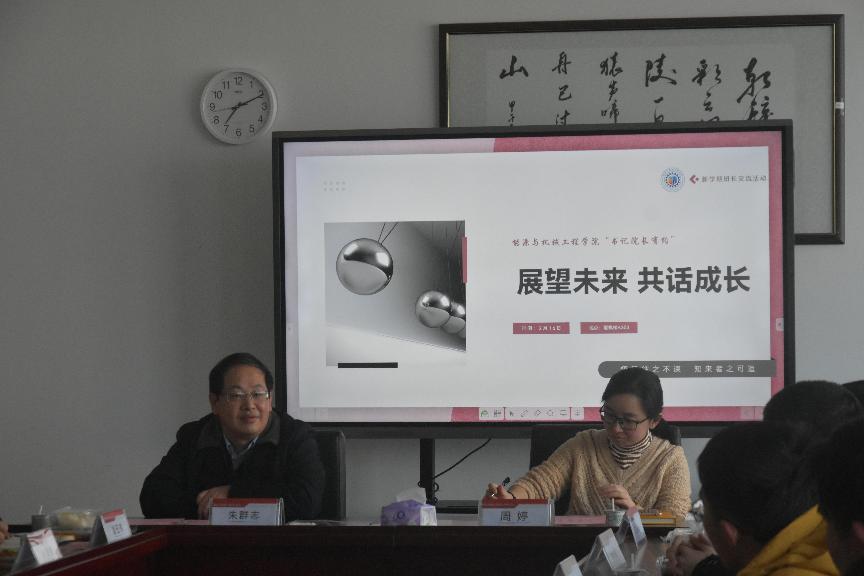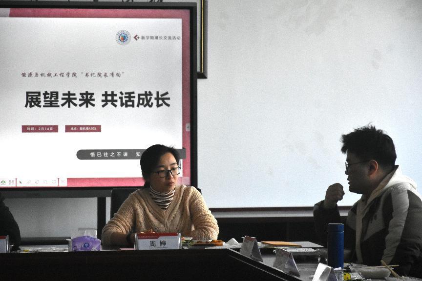 2月16日中午,356体育在线官网“书记院长有约”第二期暨新学期班长交流会在能机楼A303顺利举办。356体育在线官网院长朱群志、党委副书记周婷、辅导员赵玉伟、赵贵青、张鸿燕、梅饶兰和2021级、2022级本科班长代表参加,会议由赵贵青主持。