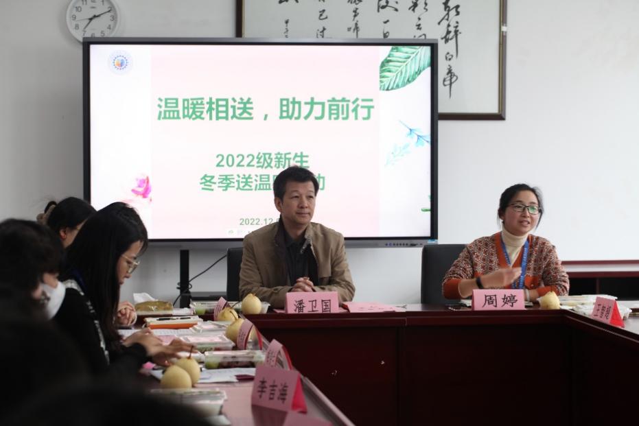 为了进一步深入了解2022级家庭经济困难学生入校后的生活和学习情况,更好地开展资助育人工作,356体育在线官网于12月7日以“温暖相送、助力前行”为主题召开2022级新生冬季送温暖活动。学院党委书记潘卫国、党委副书记周婷、辅导员赵贵青、张鸿燕出席,在校的2022级家庭经济困难学生参会,会议由学院资助专项工作负责人梅饶兰主持。