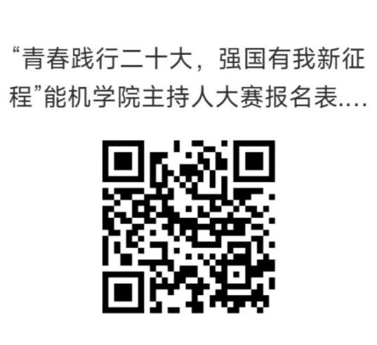 报名方式:选手需统一填写电子版《“青春践行二十大,强国有我新征程”356体育在线官网主持人大赛报名表》,报名表以“姓名+学号+报名表”格式命名,发送至文艺部邮箱:1613028123@qq.com,报名截止至4月2日晚20:00。同时用QQ扫描下方二维码进群:加群请注明班级、姓名、学号,决赛前会有相应培训。