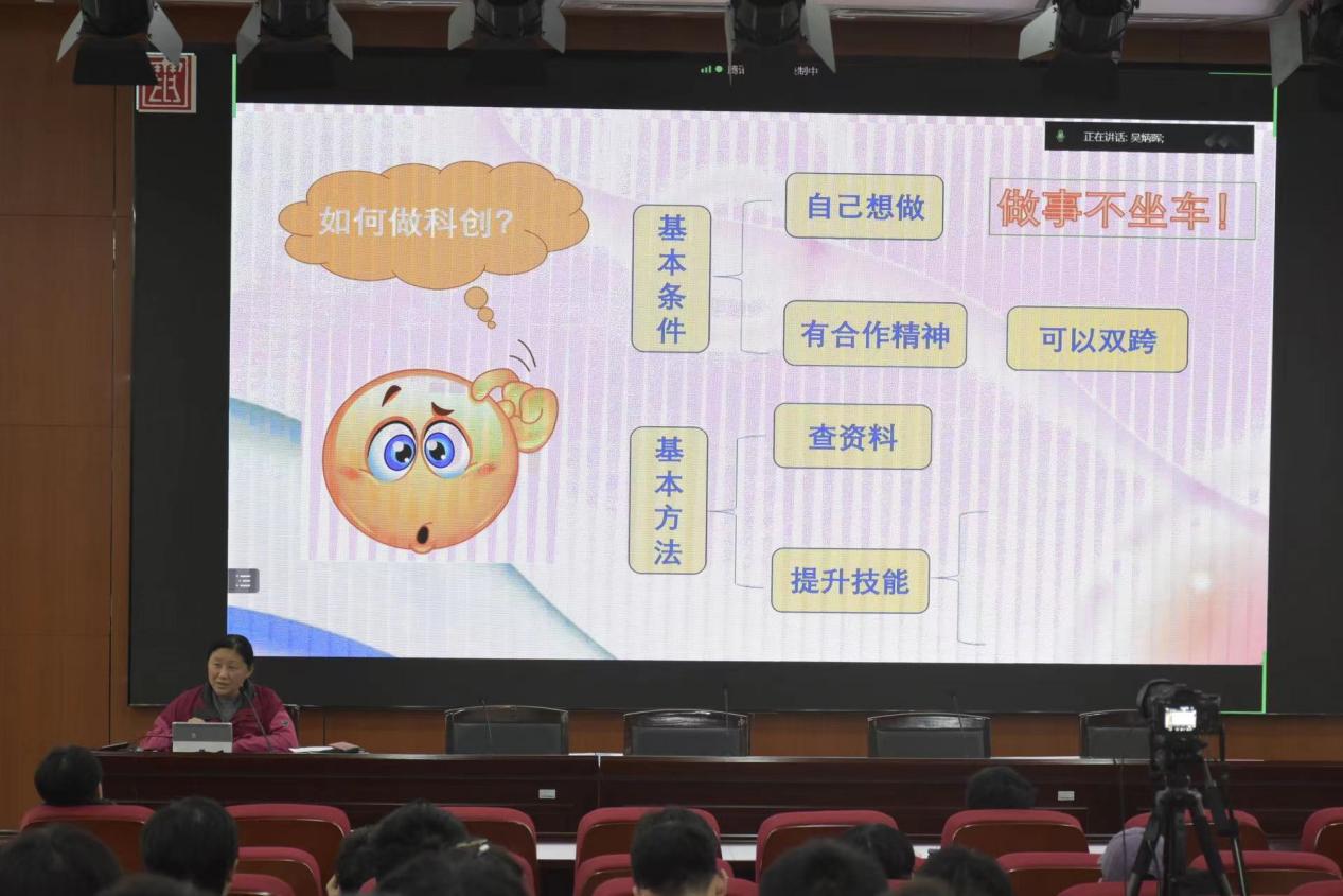 关于“大学生如何做科创”,吴炳晖强调:一要目的纯粹、出于内心热爱;二要有合作精神、注重团队协同;三要培养资料查阅和自我提升的能力;四要有将理想照进现实的精神、愿意持之以恒。