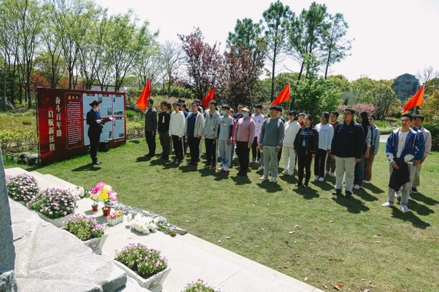 到达烈士陵园后,在讲解老师的带领下,同学们共同学习了书院57位革命烈士在抗日战争、解放战争、抗美援朝、对越自卫还击战中斗争的英勇事迹。在浦东公安英烈墙前,同学们感受到了人民警察“对党忠诚、服务人民、执法公正、纪律严明”的初心和使命。随后,同学们分别向书院革命烈士和浦东公安英烈默哀鞠躬、并敬献鲜花。此外,同学们还专门前往两弹人纪念园进行瞻仰祭拜,感受 “热爱祖国、无私奉献,自力更生、艰苦奋斗,大力协同、勇于攀登”的“两弹一星”精神。