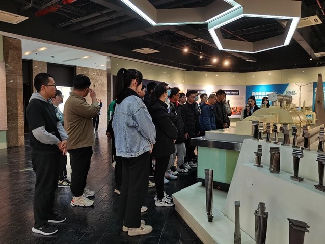 刘志红讲解员带领大家参观了“上海电气展示厅”,详细介绍了上海电气产业的历史发展、装备产业和未来发展情况。以能动全球工业,智创美好生活为使命、以成为世界级的高端装备新航母为发展愿景,让同学们感受到了上海电气对于未来发展的大胸怀和大格局。当只在书本上出现过的火电、核电和工程案例模型真实地出现在展厅内,可以在聆听讲解的同时近距离观看模型的每一个细节,让同学们更真实地理解了模型的工作原理和方式。