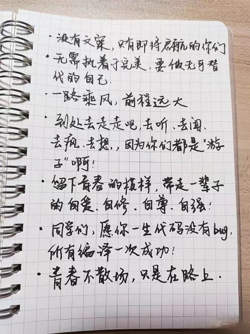 夏风带走的只有那遮不住的热意,带不走我们之间数不清的回忆。那就好好告个别吧,和课桌、黑板、操场、食堂,和吹过教室走廊最后那一阵风,和某一段回不去的青春。时光阴荏苒,我想你一定对四年的时光感慨万分,让我们将此以文字的形式记录,珍藏这段美好的回忆。语短情长,寄语作为传承的同时,鼓励356体育在线官网“后浪”,珍惜宝贵的大学时光,不负韶华、勤奋学习、快乐生活,同时感怀青春、留念岁月。