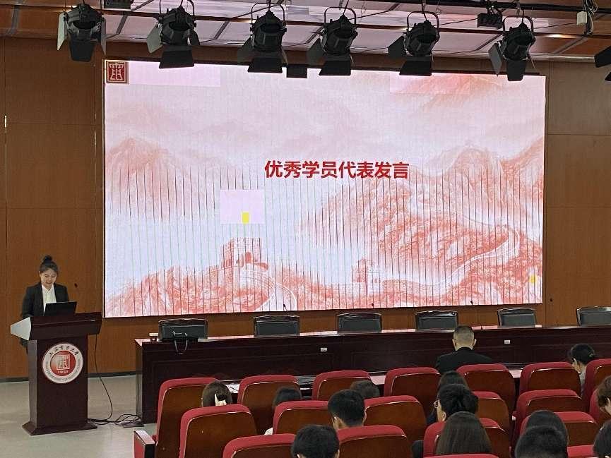 培训班优秀学员代表孙雪和在校学生党员代表张凯分别发言。孙雪表示作为入党积极分子和发展对象,要不断端正入党的动机,对照党员标准查找自身差距,以实际行动争取早日加入党组织。张凯表示希望培训班的学弟学妹们坚定理想与信念,严格要求自己,不仅要在组织上入党,更要在思想上入党。