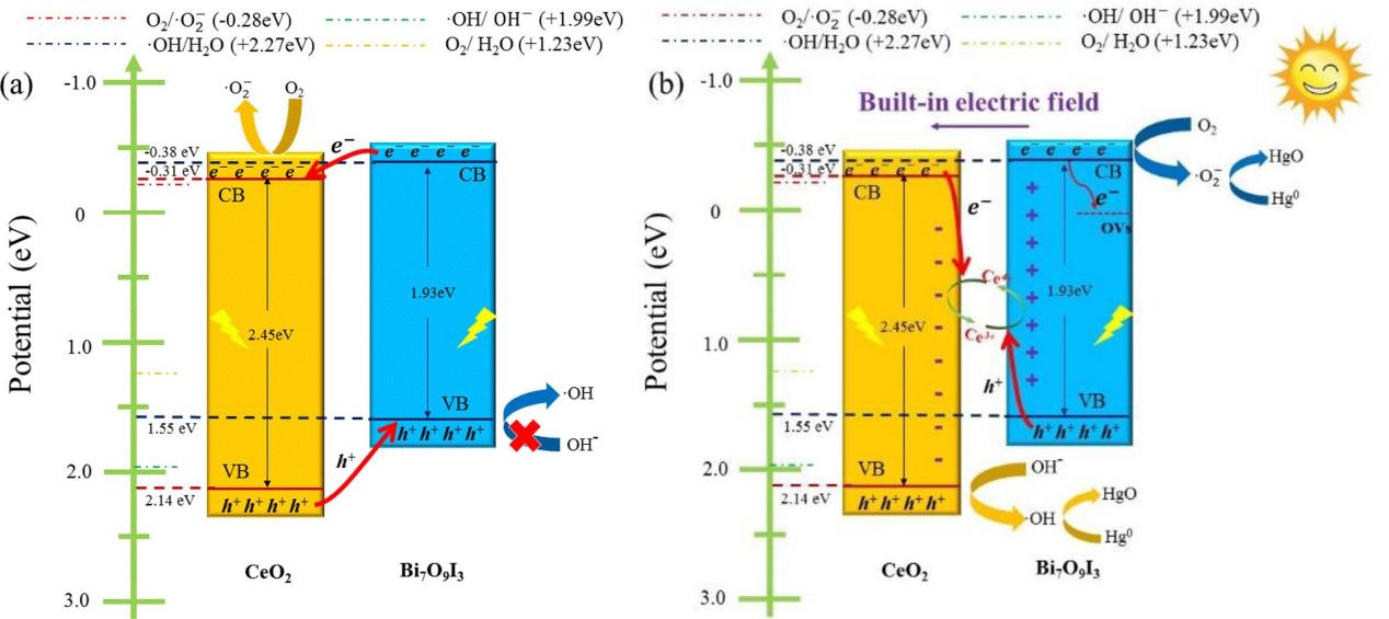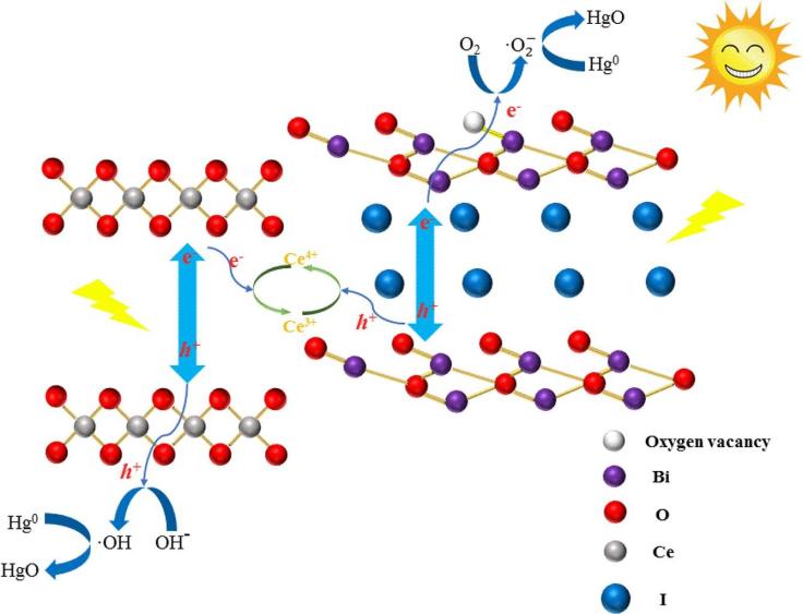 根据最新ESI数据库更新情况,356体育在线官网吴江教授重金属污染控制实验室于2022年1月在高水平国际期刊《Chemical Engineering Journal》 (SCI一区顶级,IF:16.744)上发表的论文”Rational design of CeO2/Bi7O9I3 flower-like nanosphere with Z-scheme heterojunction and oxygen vacancy for enhancing photocatalytic activity” (DOI:10.1016/j.cej.2021.133254)入选ESI高被引论文。论文第一作者为2019级硕士研究生刘国龙,通讯作者为吴江教授。促进电子转移和保留具有高氧化还原性能的光生载流子对净化光催化反应中的污染物具有重要意义。该研究通过溶剂热法巧妙设计并合成了具有Z型异质结和氧空位的CeO2/Bi7O9I3花状纳米球,用于光催化深度净化烟气汞。丰富的氧空位缺陷可以作为电子陷阱加速电子转移。CeO2与Bi7O9I3之间形成内建电场,为载流子分离及迁移提供内在驱动力,使光电子沿Z-scheme路径转移。Z型异质结和氧空位的双重作用显著不仅促进了电子转移,还保留了具有高氧化还原能力的载流子,使得CeO2/Bi7O9I3光催化剂具有优异的光催化氧化Hg0性能。这项工作为开发具有Z型异质结和氧空位的光催化剂提供了新的方向。