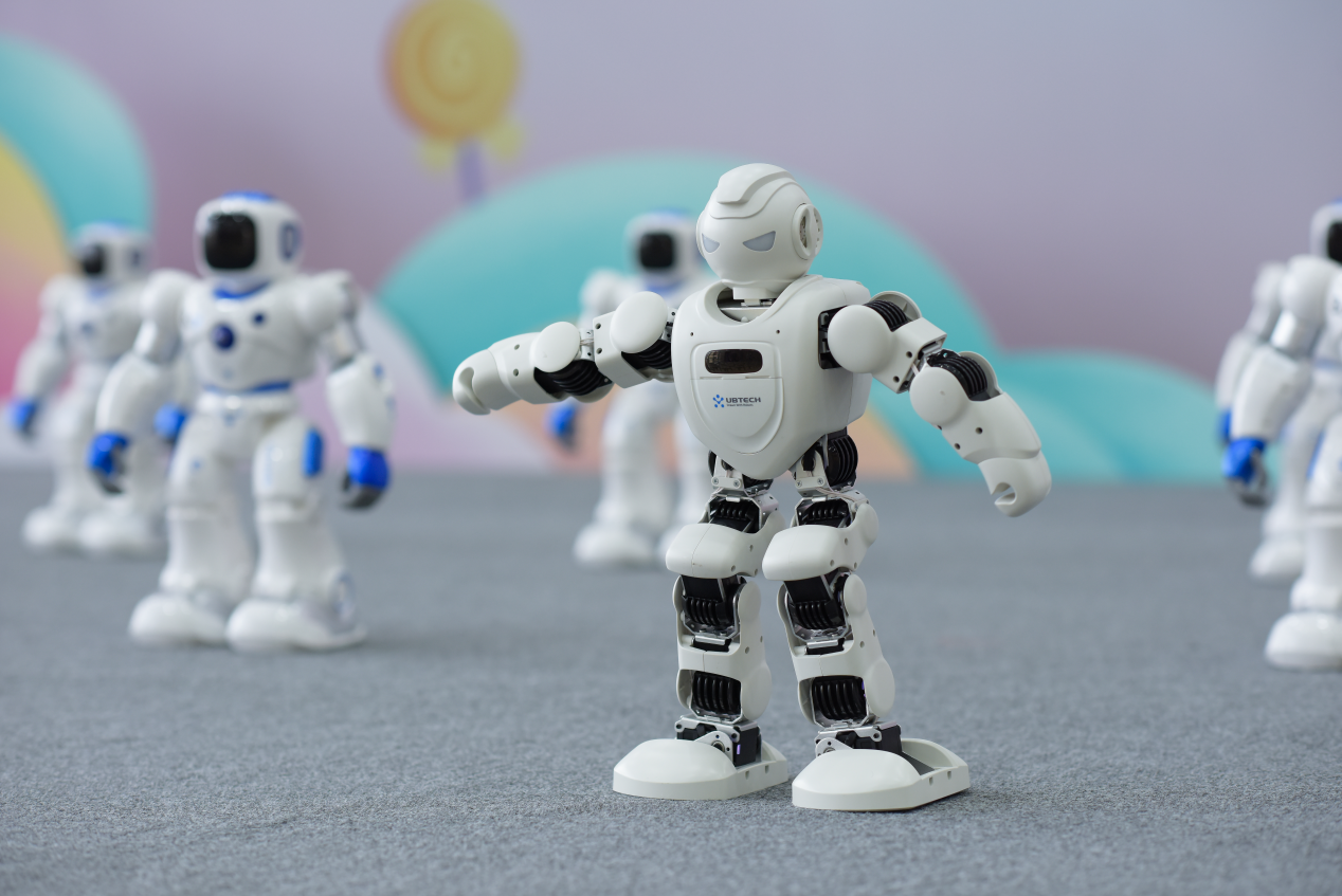2023年6月1日,在华师大临港附小体育馆,356体育在线官网的志愿者带领孩子们展示了机器人与孩子们的舞蹈大秀。这场表演展示了科技的力量,同时也向孩子们传递了正能量。机器人神态自若地完成各种动作,在舞蹈的第二部分,志愿者为孩子们挑选了爱国主题动画《那年那兔那些事》的主题曲《骄傲的少年》,通过斗志昂扬的歌曲,鼓励孩子们努力学习、勇敢面对困难,做一个向上的、奔跑的、骄傲的少年,为孩子们营造了一个充满梦想和热情的舞台氛围。