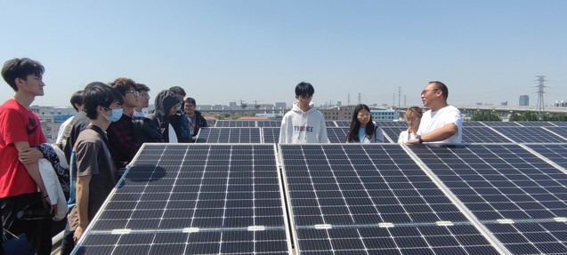 我院师生一行首先参观了公司的屋顶分布式光伏发电项目,在现场公司为同学们耐心讲解了光伏板的型号、特征、能效和寿命、光伏板获得最大光能的条件、换流器的工作原理等,同学们纷纷表示受益匪浅,不仅对在学校所学的专业知识在实际应用方面有了直观感受、开阔了眼界,也身临其境地感受了企业的工作氛围,加深了对企业的了解,促进了自己对职业生涯的规划思考。