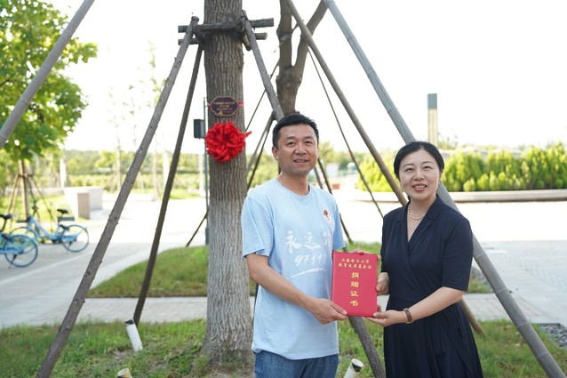 为表达对母校、老师的深厚情谊和美好祝愿,同时纪念班级同学的深厚感情,97112班全体成员在能机楼下进行了校友树认捐,校基金会秘书长丛亮为校友代表颁发捐赠赠书,承载着岁月年轮的树木成为了他们与母校的深情的纽带,传递着他们对母校由衷的感恩。