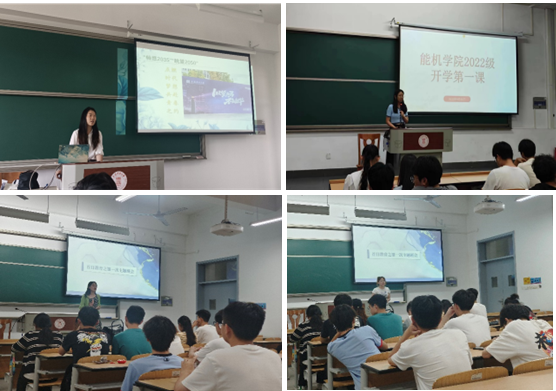 聚焦“习近平总书记与大学生在一起”这一主题,紧紧围绕习近平总书记对青年的嘱托,面向全体本科生开展“开学第一课”,一起重温总书记对青年学生的暖心寄语,聆听总书记的“开学第一课”。广大青年既是追梦者,也是圆梦人。2023年《开学第一课》通过“行走的课堂”充分诠释了在各个领域“强国复兴”的征途中“如何有我”和“何以有我”。同时,在主题班会中引入我校荣获2022年度中国大学生自强之星奖学金的毛欣宇、2021年度“中国大学生自强之星标兵”杨昌雷的事迹,通过观看视频和榜样示范,引导学生结合人生志向、价值取向、成长方向深入思考“强国之路 青年何为”,进一步明晰自身成长路径和人生方向。此外,积极组织学生“畅想2035、眺望2050”,激励青年学生躬身入局,挺膺担当,与时代同频共振,共筑同心圆。