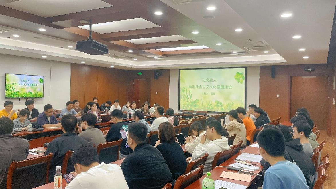 第二节课由我校吕莹老师主讲,主题是《以文化人,推进社会主义文化强国建设》。吕莹老师从为什么建设社会主义强国,走“中国特色”的文化强国道路,奋力推动社会主义文化强国建设三个方面入手,通过列举生活中常见的例子,深入浅出的讲出了文化强国的重要性与必要性。