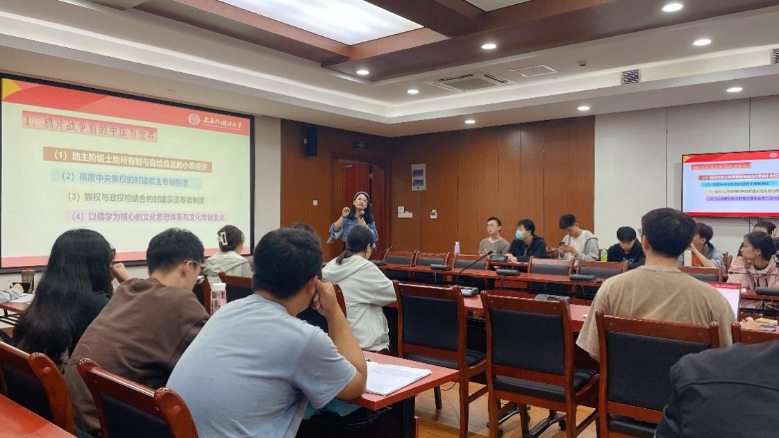 郭慧超老师在第一节课给大家进行了以《何以复兴?-实现社会主义现代化和中华民族伟大复兴的精神动力》为主题的讲座。从中国近代社会的历史变迁,到中国共产党的成立与发展,立足于历史,解释何为复兴,如何复兴。深化了同学们对实现社会主义现代化的信心与动力,在此期间,同学们认真听讲,讲座氛围活跃。