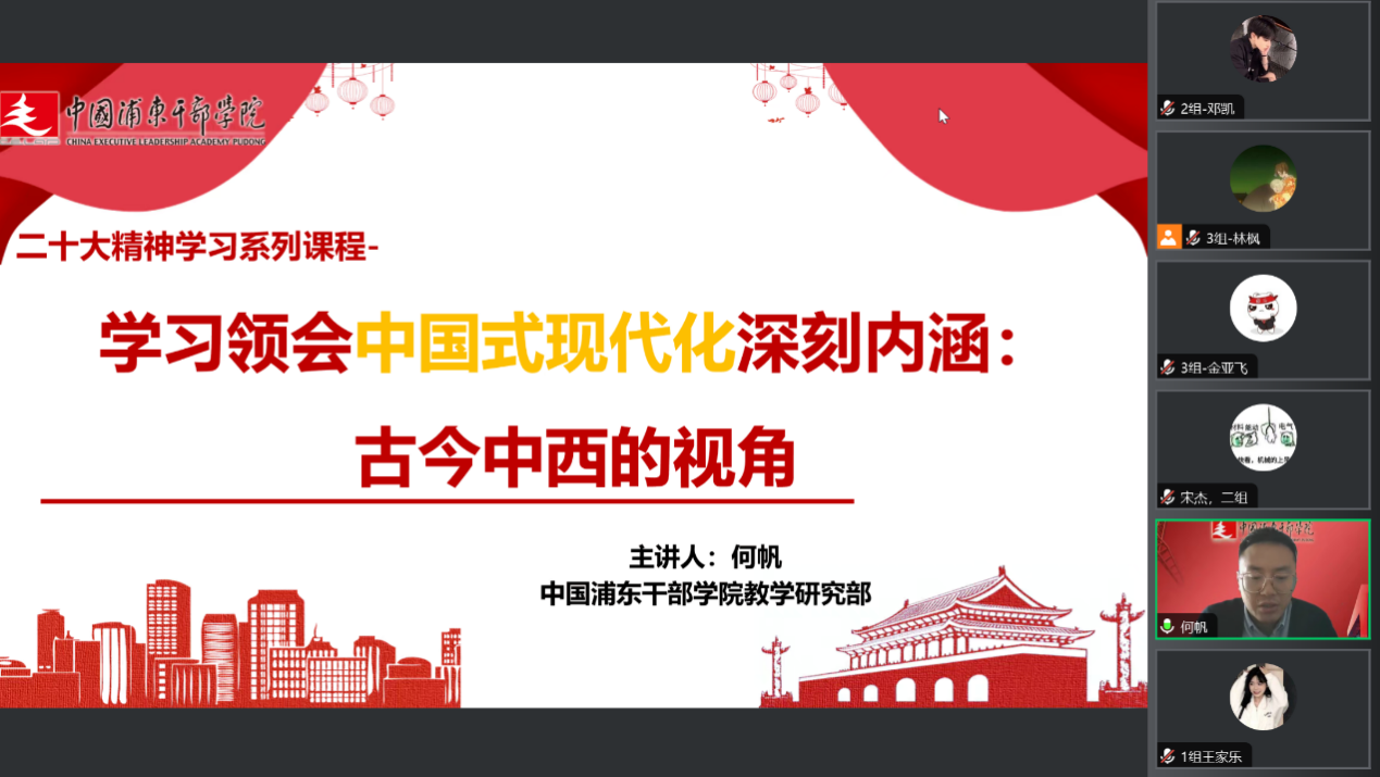 2023年10月15日356体育在线官网分党校举办第10期发展对象培训班第四讲。中国浦东干部学院讲师、党性教育团队成员何帆老师为此次班级培训的主讲授课老师,开展了以“党的二十大精神学习系列课程——学习领会中国式现代化深刻内涵:古今中西视角”为主题的党课培训。