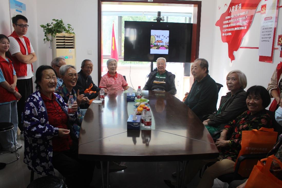 其次是暖心茶话会,志愿者们陪同长者们开始了气氛温馨的茶话会,老人们谈古论今话期待,志愿者们洗耳恭听学经验。老人们与居委工作人员以及年轻一辈的校园志愿者们度过一个温馨暖心的时光。通过轻松愉快新老对话,我们从前辈的往事和经历感受到祖国的发展和繁荣,也学习了宜浩佳园二居委优秀的家庭和社区文化。