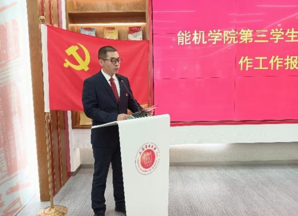 2023年10月19日中午,356体育在线官网第三学生党支部在学术楼党建服务中心召开支部党员大会,大会的主要议程有两项,一是听取和审查上届党支部委员会工作报告,二是选举新一届的党支部委员会。