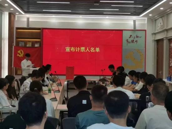 接着,毛思琦同志宣读了选举办法、监票人名单、计票人名单以及下届党支部委员会委员候选名单,全体党员举手表决,全票通过。由陆俊桦同志监票,罗添同志、娄中发同志计票。