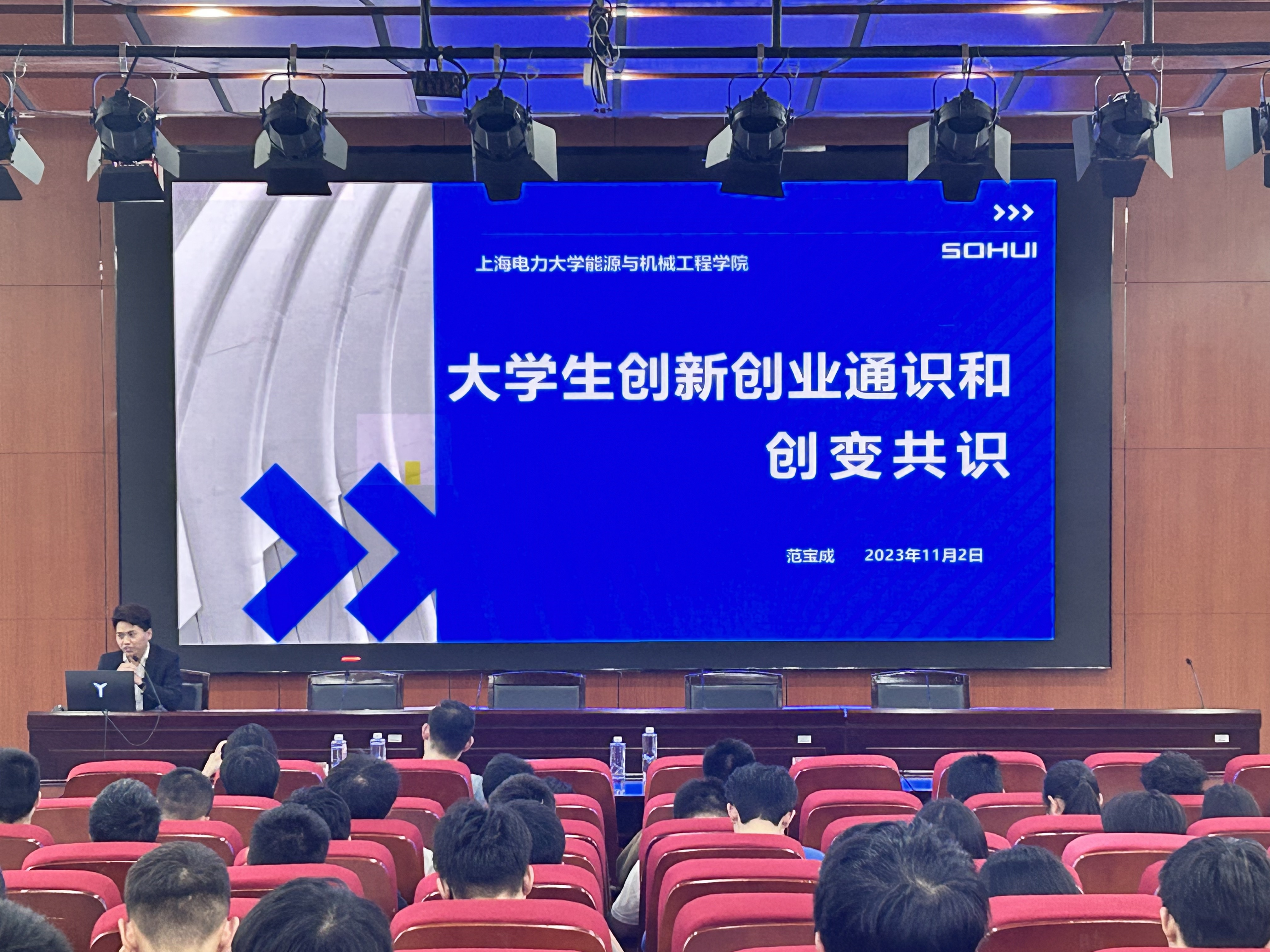 会议最后,邀请了全国“互联网+创新创业”大赛导师范宝成以“大学生创新创业通识和创变共识”为主题,为在场师生进行专题讲座。范老师从分享自己学生时期的经历谈起,从最初获得创业动力与资源,到企业的价值链,进而创业VRIO模型等,结合自身的发展、经验、感受,为同学们详实地描绘了一个创业者的奋斗史,生动的讲座为现场的同学们树立起投身创新创业活动的榜样,帮助同学们明确开启创新创业项目的方向,也激发起更多同学对自己的创新创业之路的期待。