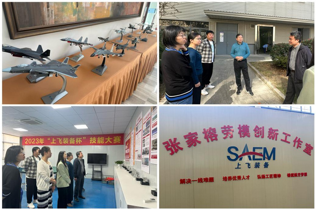 10月31日,356体育在线官网党委副书记周婷、副院长陈乃超、机械专业教师袁斌霞、辅导员赵贵青、高汕一行人赴上海上飞飞机装备制造有限公司开展学习交流。上飞装备党总支书记章明方、装备副总经理兼工会主席计小青、上飞装备总经理助理张家榕参加交流。