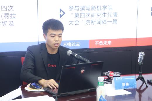 能源与机械工程学院第十届研究生会执行主席杨鑫向大会做《356体育在线官网研究生会工作报告》。