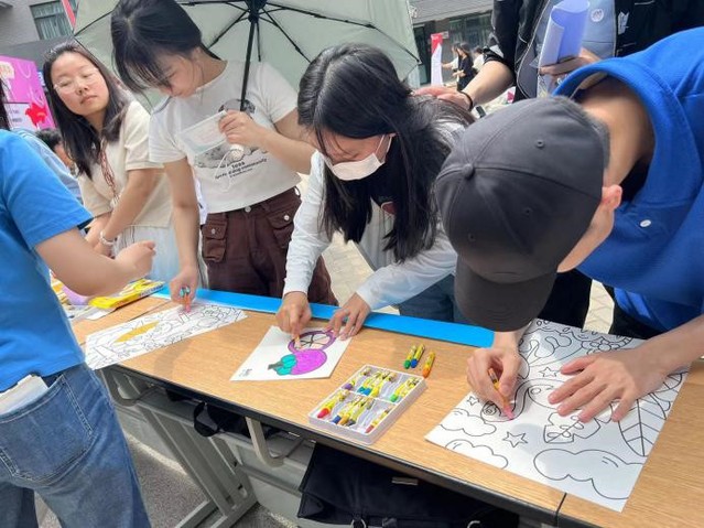 活动现场,在精心布置的摊位上,4个充满创意的小活动及能机心协精美的定制周边吸引了大量同学参与活动。在趣味涂鸦摊位上,参与者收到画纸后在上面绘画涂鸦,同学们用蜡笔涂色,完成后贴在大背景板上,组成了一幅大画作。心灵奇旅摊位上,参与者在游戏中会收到一张小纸片,由参与者随心写画,随后收集在大纸箱“漂流瓶里”,同学们写下的内容既有对未来的憧憬,也有对当下的期许。