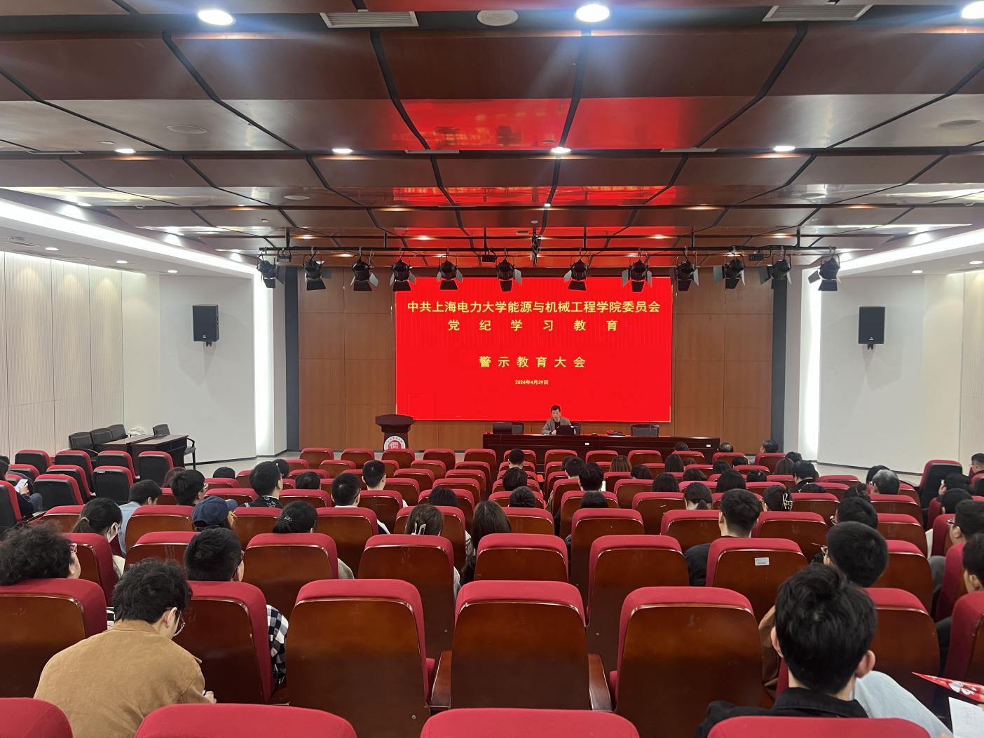 2024年4月29日,356体育在线官网在学术楼103报告厅召开2024年全面从严治党警示教育大会,会议由党委书记潘卫国同志主持,全体师生党员参会。
