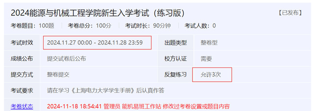 (可选全天任意时候参与考试,请于当天22点前完成答题,防止因为过晚导致成绩无法正常录入。)