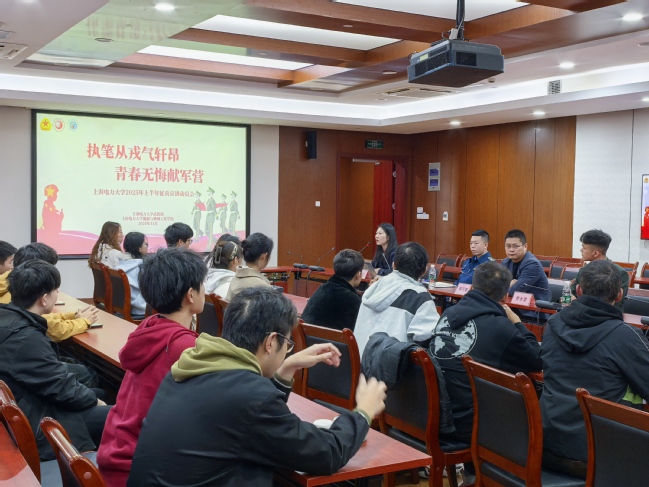 国无防不立,民无兵不安。为进一步推动征兵工作落实落细,提高同学们的国防意识,11月26日下午,武装部联合356体育在线官网在学术楼301开展了2025年上半年征兵宣传动员会。活动邀请部队现役官兵徐展坤、武装部军事教研室专员薛正豪以及优秀退役士兵代表曹永富参加,会议由武装部挂职干部、356体育在线官网征兵专项工作负责人仝晶晶主持。