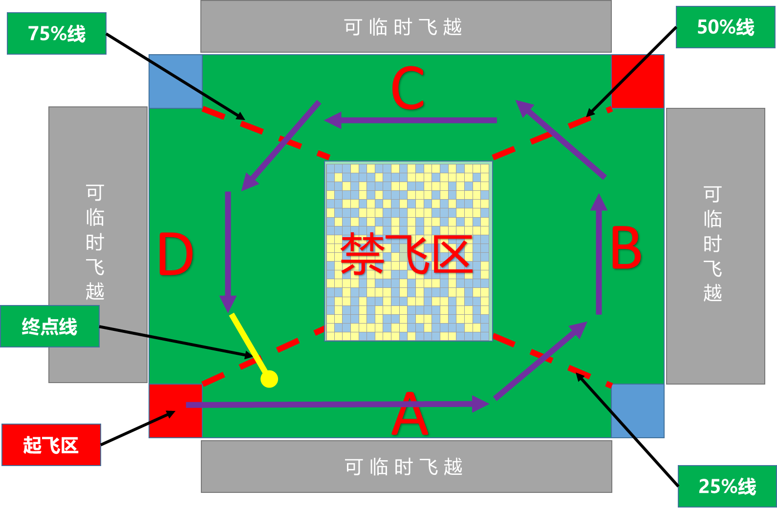 2.场地中心20×20方格上方为禁飞区;