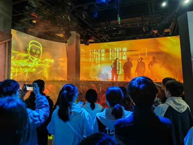 在红色泥城主题馆,师生们像通过历史图片、实物展品和场景复原,系统学习了泥城地区从五四运动到解放战争时期的革命斗争史。特别是1938年在“汇角血战”中,以周大根为代表的28名中华儿女,为了抗日救国的理想,英勇地献出了自己宝贵的生命,他们的故事无不让在场师生们动容。2023级新能源科学与工程专业学生司晨悦表示:“这些年轻的生命用热血诠释了信仰的力量,我们新时代青年更应珍惜来之不易的和平。”